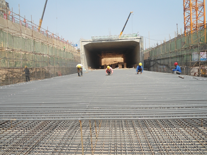 道路工程起于文莊路,地塹部分左線ZK0+725-ZK0+886.65,全長(zhǎng)161.65m,右線YK0+725-YK0+887.65,全長(zhǎng)162.65m。地上部分北側(cè)BK1+375-BK2+025,全長(zhǎng)650m,南側(cè)NK0+425-NK1+075,全長(zhǎng)650m。道路橫斷面為:4米人行道+3.5米非機(jī)動(dòng)車道+3.0米綠化帶+14.75米機(jī)動(dòng)車道+13.75機(jī)動(dòng)車道+13.75機(jī)動(dòng)車道+14.75米機(jī)動(dòng)車道+3.0米綠化帶+3.5米非機(jī)動(dòng)車道+4米人行道。
